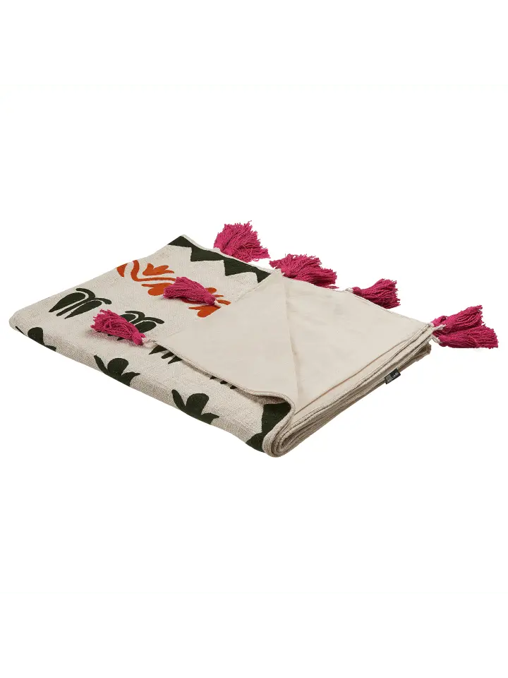 Красочное хлопковое одеяло ручной работы с декоративными кисточками. Этот плед, сотканный из высококачественного хлопкового волокна, обеспечивает комфорт и тепло в холодные дни. Благодаря натуральной ткани одеяло не только пропускает воздух, но и отличается особой прочностью, поэтому его можно использовать круглый год. Устройтесь в этом одеяле на диване или накиньте его на кресло, чтобы придать комнате ярких красок. Все детали изготовлены вручную, поэтому каждая модель уникальна.