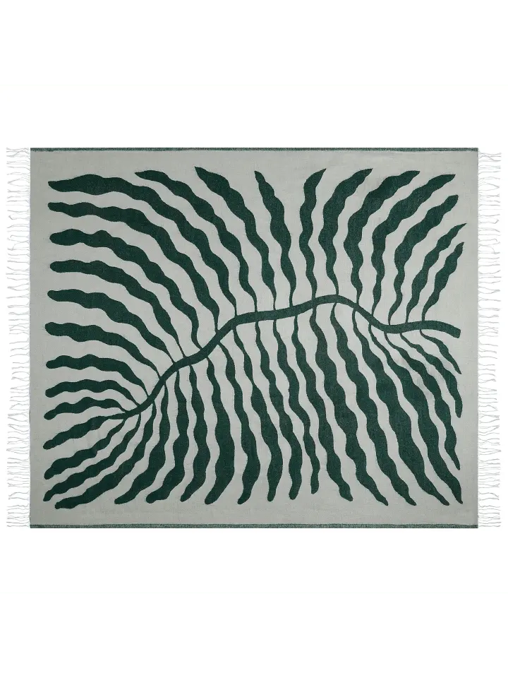 Прямоугольное одеяло с бахромой и мотивом пальмы BARTAR. Украсьте свой дом этим стильным и уникальным одеялом. Изделие зеленого цвета и украшено изображением пальмы с обеих сторон. Одеяло с бахромой придаст любому интерьеру атмосферу бохо. Он изготовлен из прочного акрила и полиэстера, что делает его легким в уходе и мягким на ощупь.