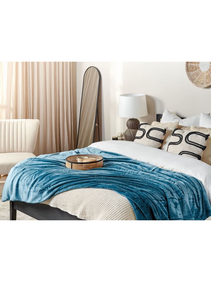 Мягкий пушистый плед синего цвета из высококачественной ткани. Устройтесь в этом одеяле на диване или накиньте его на кресло, чтобы придать комнате ярких красок. Он соткан из высококачественных синтетических волокон и обеспечивает комфорт и тепло в холодные дни. Главной особенностью этого пледа является его приятная, мягкая и приятная поверхность, которую вы обязательно оцените во время телевечера. Ткань также красиво переливается на свету, поэтому вы можете рассчитывать на потрясающий вид.