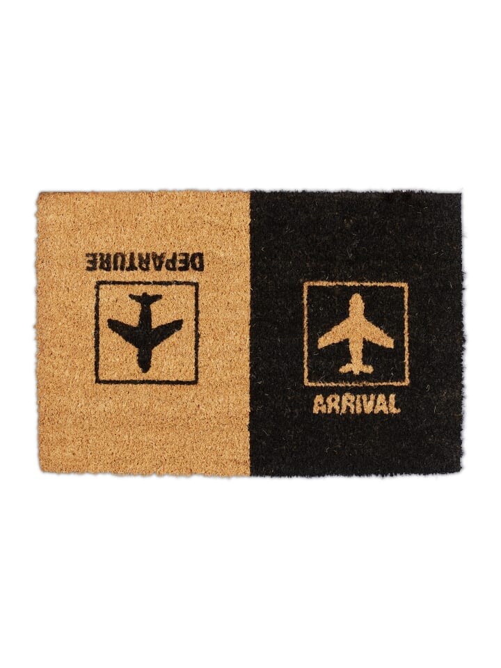 С помощью этого оригинального коврика с изображением самолета и надписью «Прибытие-Отбытие» вы сможете вызвать улыбку у своих гостей еще до того, как они откроют дверь. Но дверной коврик впечатляет не только визуально. Натуральные кокосовые волокна делают коврик прочным и долговечным. Благодаря атмосферостойким свойствам экологически чистого сырья коврик можно использовать внутри и снаружи. Нижняя сторона изготовлена из нескользящего ПВХ, поэтому коврик для обуви остается на своем первоначальном месте.