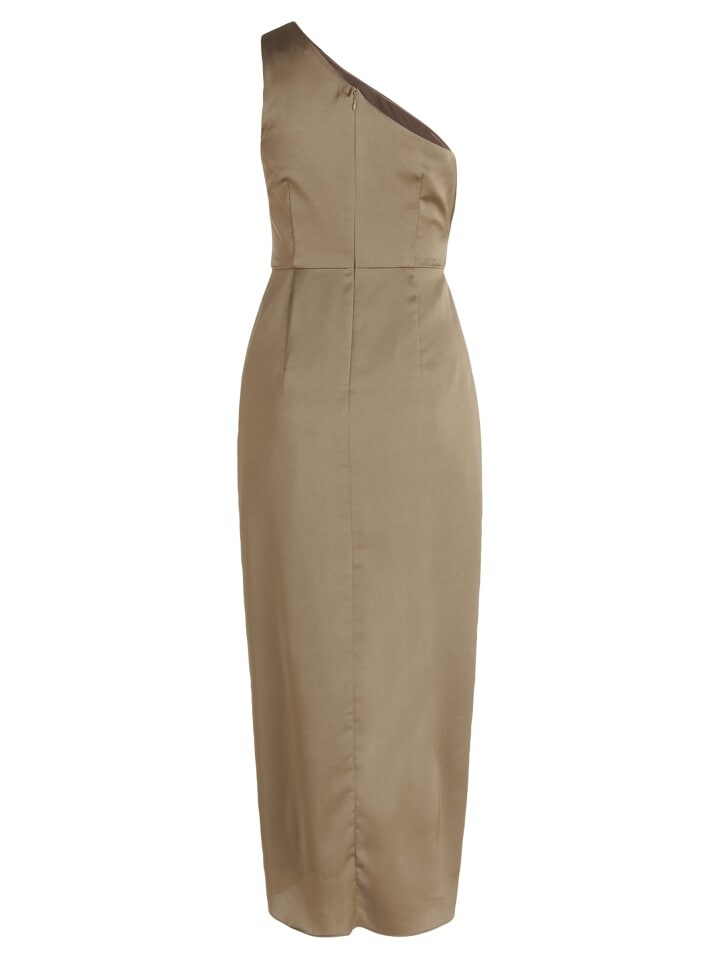 Это потрясающее вечернее платье от Vera Mont из блестящего атласа – символ вневременной элегантности. Облегающий крой подчеркивает ваш силуэт, а простой однотонный дизайн обеспечивает универсальное сочетание.