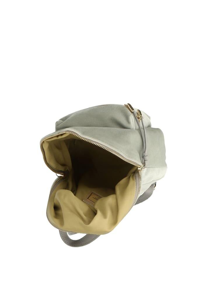 Женский рюкзак на молнии. отсутствуют внутренние карманы. передняя часть с внешними карманами на молнии. отсутствует плечевой ремень. Кожаная ручка. внутренний отсек. Внешний материал. Подкладка 70% хлопок, внутри 30% полиэстер. Размеры: 22х29х15 см. Сделано в Италии 22x29x15 см