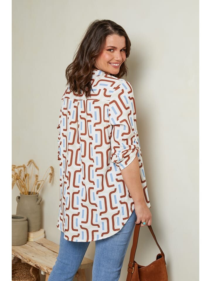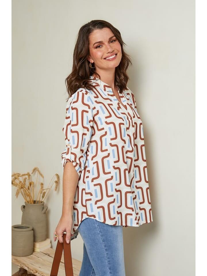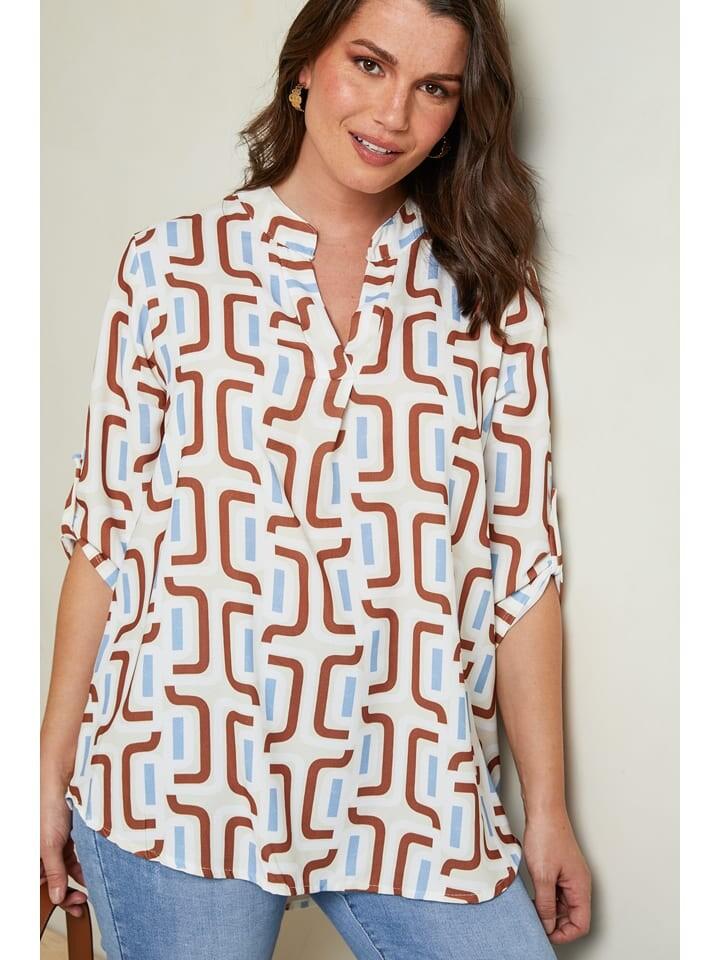 Блуза Curvy Lady, цвет weiß/braun/hellblau
