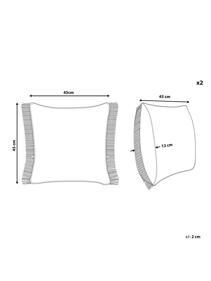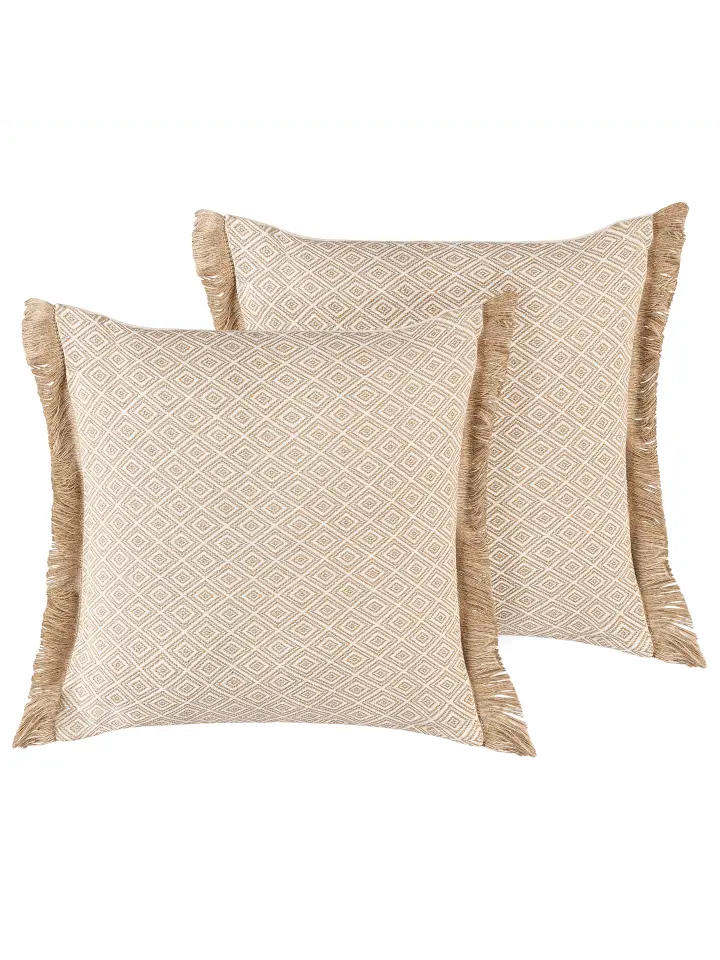 Квадратные декоративные подушки в наборе из 2 штук с бежевой бахромой. Вам нужен аксессуар для дома, который придаст вашему интерьеру деревенский, но в то же время бохо-налет? Тогда эта подушка с бахромой песочно-бежевого цвета станет идеальным выбором. Этот аксессуар выглядит особенно уютно и нежно благодаря пышной бахроме с обеих сторон. Идеально подходит для легких диванов, кресла или в качестве дополнительной подушки на кровати.