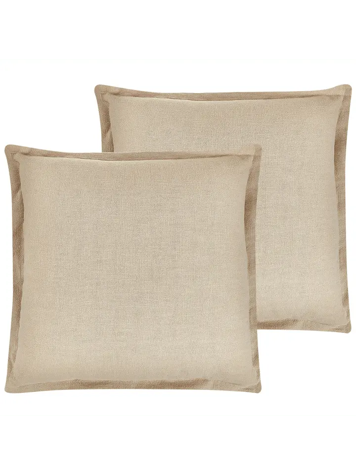 Две квадратные бежевые диванные подушки с бордюрами. Эти две простые подушки придадут вашей гостиной уютную и гостеприимную атмосферу. Изготовлен из высококачественного полиэстера, сзади комплект имеет молнии. Благодаря нежной цветовой гамме декоративные подушки хорошо сочетаются с современным или традиционным стилем мебели. Элегантные, широкие стоячие швы придают нотку величия спальням и гостиным.