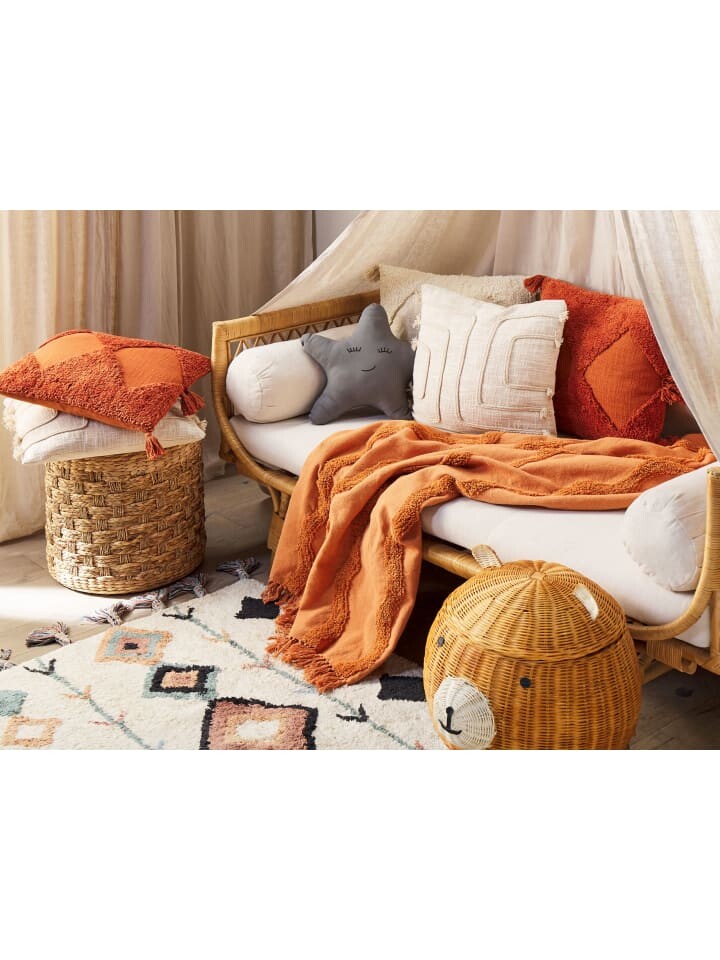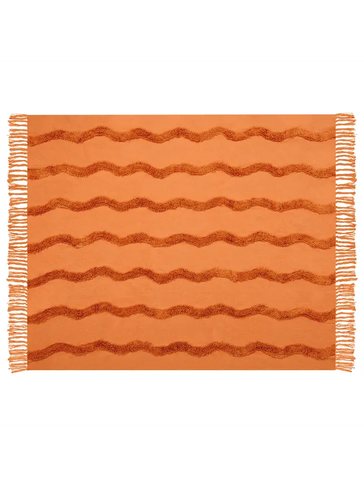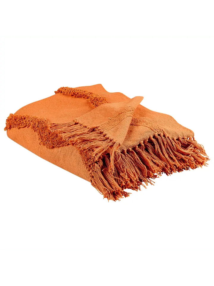Оранжевое одеяло ручной работы из высококачественного хлопка с бахромой. Вы ищете уютный диванный плед, под которым можно проводить каждый вечер перед телевизором в приятном тепле? Эта уникальная модель идеально подойдет для этого и ее даже можно использовать как покрывало на кровать, чтобы вы также могли создать уютную атмосферу в своей спальной зоне. Особенность этого одеяла в том, что оно с любовью изготовлено вручную из высококачественного хлопкового волокна. Он впечатляет уникальным внешним видом, который больше невозможно повторить. Материал приятен для кожи и долговечен, несмотря на высокий уровень износа. Светлый цвет, декоративная бахрома и вышитый волнистый узор создают выигрышный дизайн в стиле бохо, который обязательно подойдет для любого жилого помещения.