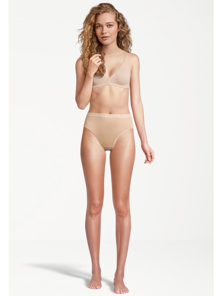 Эти трусы на талии обеспечивают оптимальный комфорт благодаря удобному тканому поясу и более высокой защите спины. Дышащий материал и высокая эластичность обеспечивают мягкость, шелковистость и свободу движений. Легкий блеск придает трусам элегантный вид.
