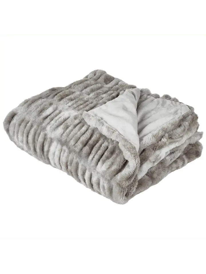 Мягкий плед из пушистого материала серого цвета. Наслаждайтесь максимальным комфортом с нашим одеялом из искусственного меха, которое отличается приятным и мягким ворсом. Текстурированная поверхность придает покрывалу уютный шарм и делает его идеальным дополнением, добавляющим зимнюю нотку в вашу комнату. Принесите тепло в свой дом с этим уютным одеялом.