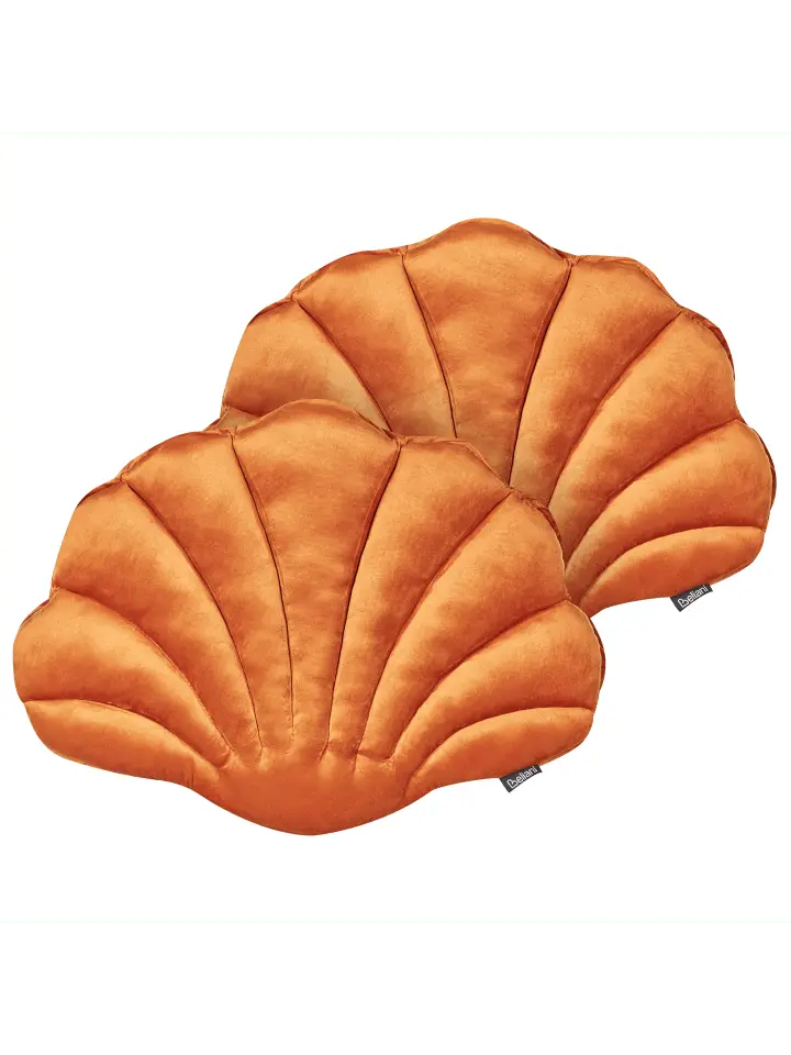 Две современные оранжевые подушки-ракушки из гладкой бархатной ткани. Благодаря уникальному дизайну корпуса этот набор декоративных подушек принесет морской бриз прямо в ваш дом. Декоративные подушки очаровывают не только высококачественным бархатным чехлом и детальной отделкой, но и ярким выбором цветов, которые мгновенно оживляют любое жилое пространство и заставляют каждое сердце биться чаще. Кроме того, диванные подушки оснащены приятным мягким наполнителем из ПП-хлопка. От гостиной до спальни и столовой — эти бархатные подушки обещают добавить уюта и игривости в любую комнату.
