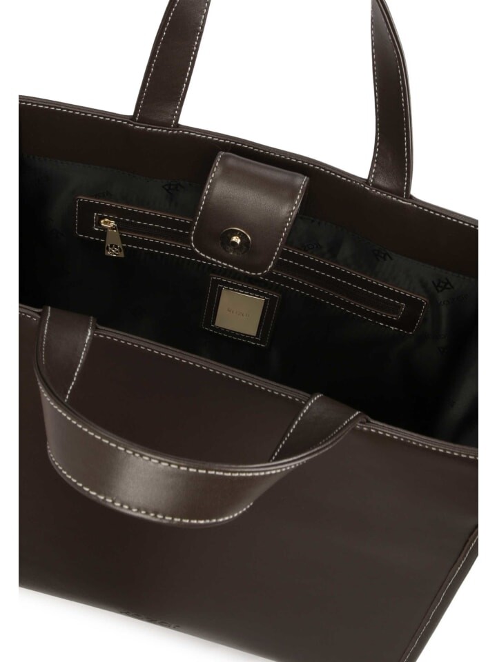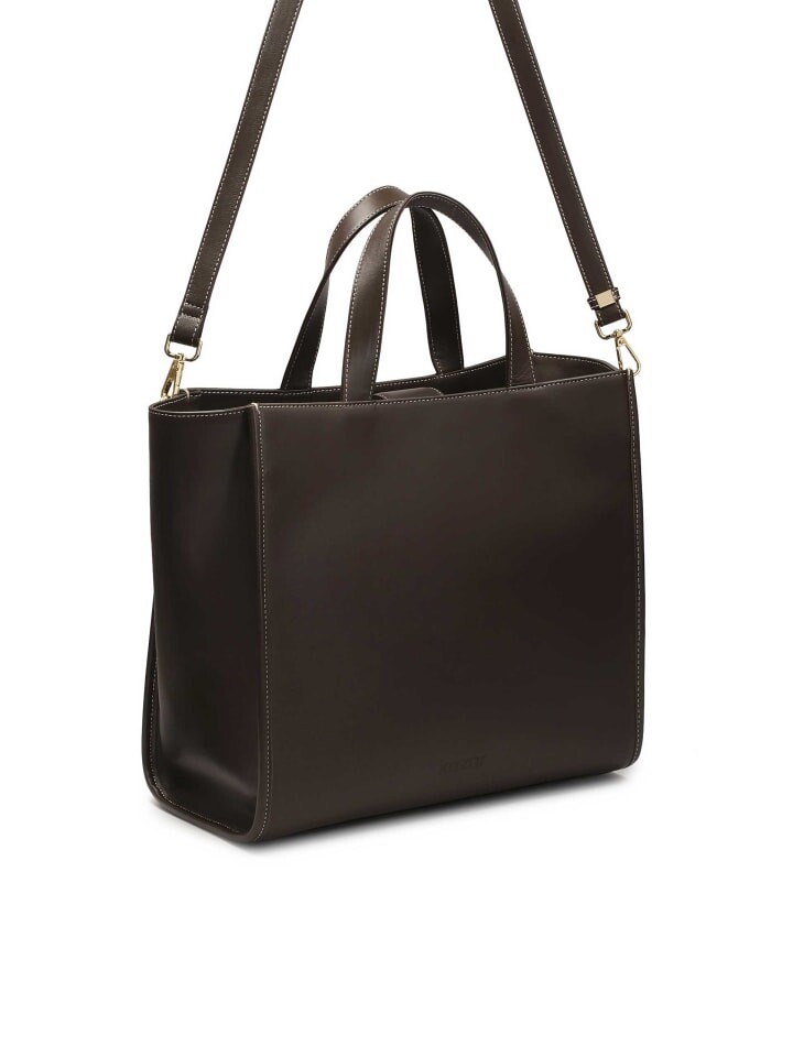 Большая сумочка простой правильной формы из натуральной кожи темно-коричневого цвета – элегантный и функциональный аксессуар, идеально подходящий для повседневного использования. Их классическая и минималистичная форма делает их универсальными и подходят ко многим нарядам. Он оснащен двумя прочными ручками, позволяющими удобно носить его в руке или на предплечье, а также съемным плечевым ремнем. Эта сумочка является идеальным выбором для женщин, которые ценят стиль, элегантность и функциональность, и подходит как для повседневного ношения, так и для более официальных случаев.