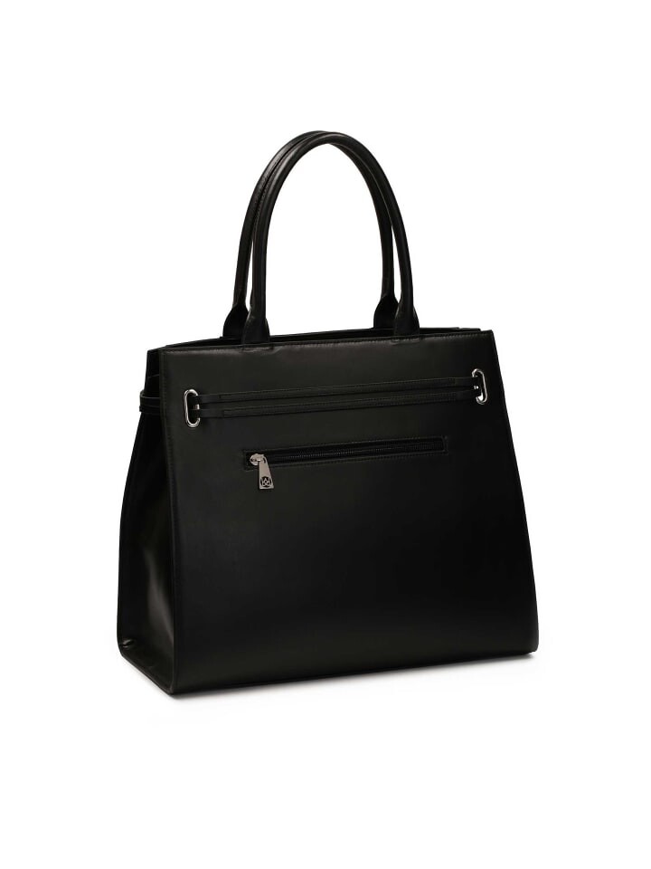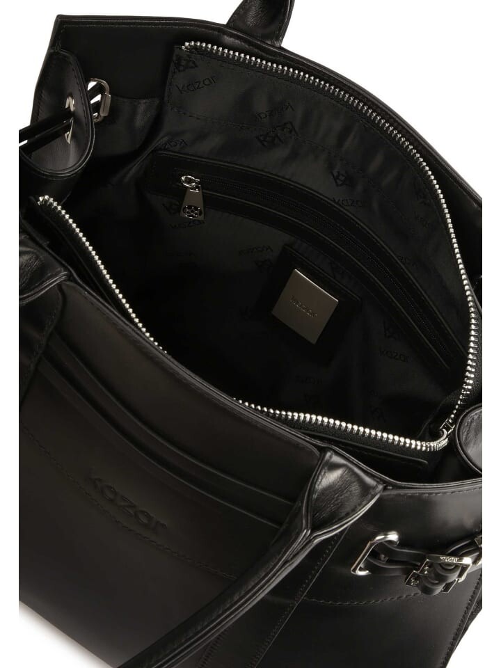 Элегантная сумочка с жесткими ручками и съемным ремешком – классический аксессуар, излучающий стиль и изысканность. Благодаря черной натуральной коже он не только выглядит роскошно, но также прочен и устойчив к повседневному использованию. Жесткая конструкция придает ей элегантность и надежность, сохраняя при этом простой, но отличительный характер. На передней части сумки расположены два ремешка с металлическими пряжками серебристого цвета, которые придают всей композиции тонкий оттенок современности и шика. Представленная модель – это не только практичный аксессуар, но и выражение личного стиля и вкуса. Элегантный дизайн делает ее подходящей как для формального, так и для повседневного стиля.