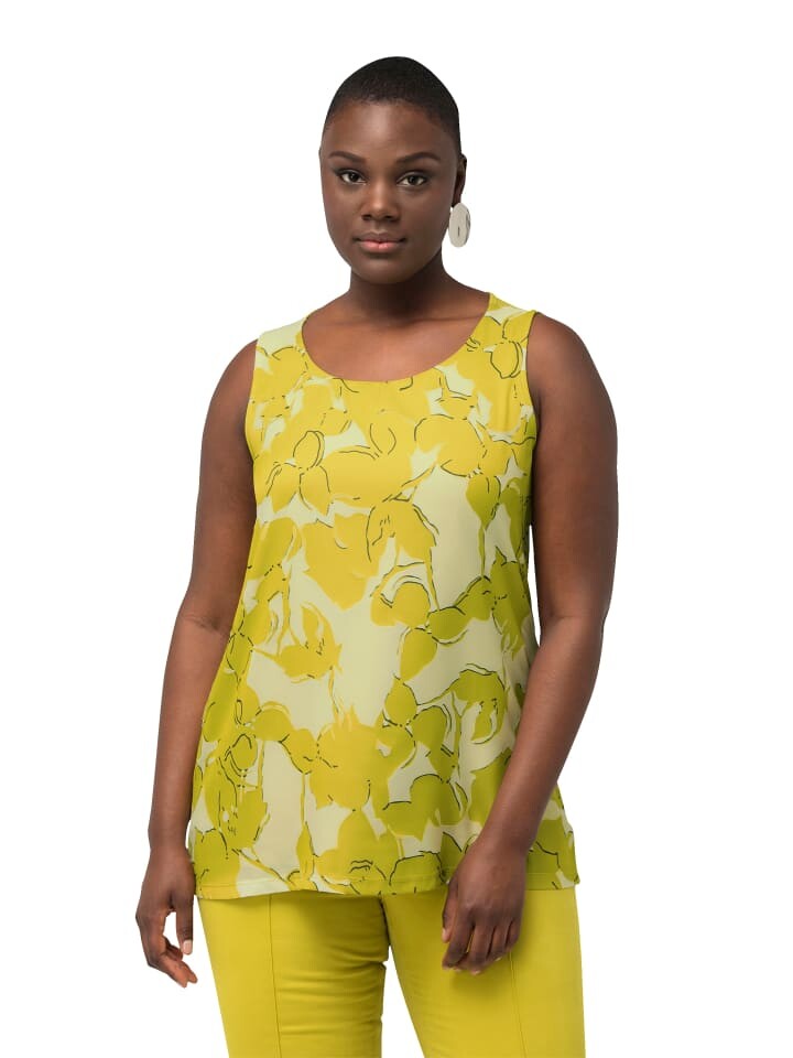 Блузка-верх без рукавов А-силуэта. Двойной слой: верхний слой выгорания с принтом, под ним верх из непрозрачного трикотажа (95% вискоза, 5% эластан).