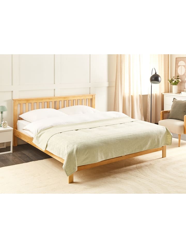 Двустороннее покрывало бежевого цвета. Окутайте себя неподвластной времени элегантностью нашего хлопкового одеяла, украшенного тонким узором. Его можно использовать с обеих сторон, и он станет прекрасным дополнением к вашей спальне или гостиной.