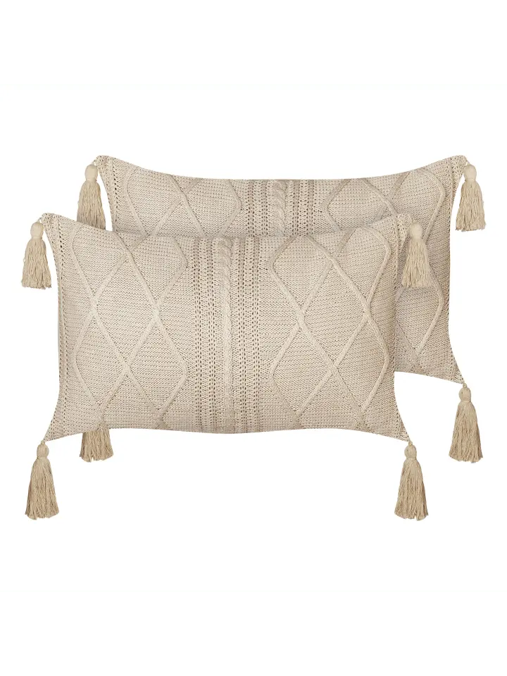 Набор из 2 подушек с плетеным узором. Этот комплект подушек, незаменимый в гостиной, придаст вашей комнате стильный вид и уют. Мягкие чехлы имеют плетеный узор, который придает им деревенский вид и ощущение тепла. Чехлы также снимаются и их можно стирать в стиральной машине.