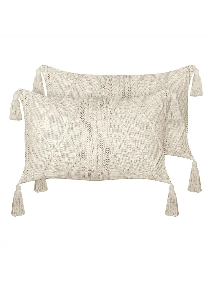 Набор из двух подушек с плетеным узором. Этот комплект подушек, незаменимый в гостиной, придаст вашей комнате стильный вид и уют. Мягкие чехлы имеют плетеный узор, который придает им деревенский вид и ощущение тепла. Чехлы также снимаются и их можно стирать в стиральной машине.