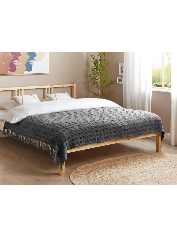 Уютное фактурное хлопковое одеяло с бахромой. С этим мягким простым одеялом вы гарантированно украсите свою гостиную или спальню. Он полностью изготовлен из натуральных прочных хлопковых волокон, которые не только обеспечивают приятные ощущения, но и обеспечивают бескомпромиссное качество. За диванным одеялом очень легко ухаживать, его можно легко стирать в стиральной машине. Благодаря декоративной бахроме и фактурному дизайну это декоративное одеяло создаст изысканный и уютный вид на вашем диване, кровати или кресле.