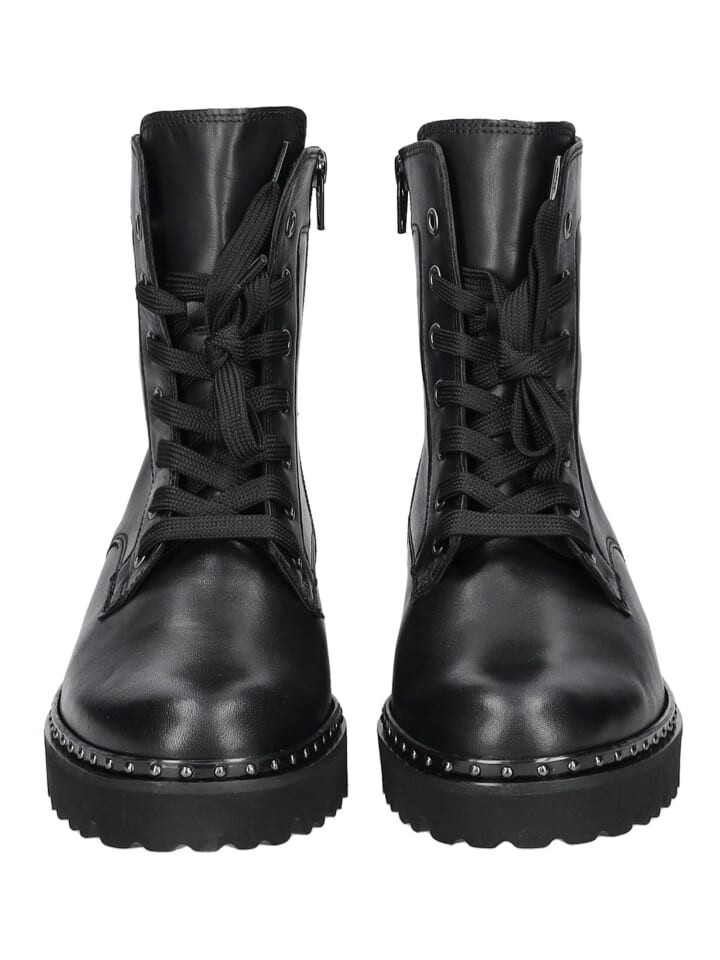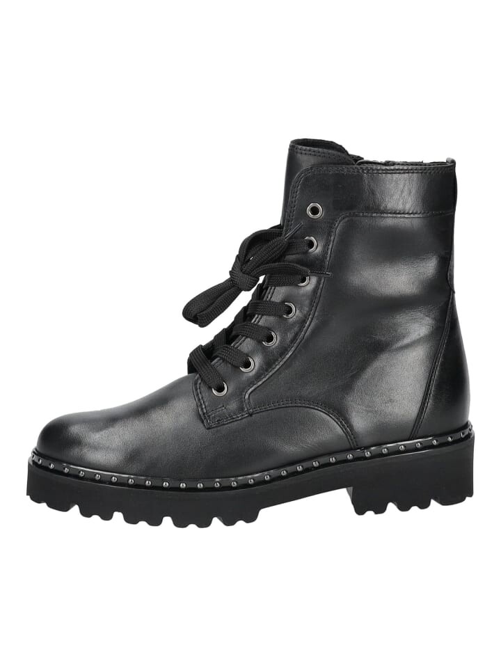 Эти модные кожаные ботильоны на шнуровке от Gabor впечатляют стильными деталями. Особой изюминкой являются тонкие заклепки вдоль подошвы. Пушистая текстильная подкладка внутри обеспечивает приятный микроклимат для ног. Съемная стелька позволяет легко заменить ее при необходимости. Кроме того, дополнительная молния облегчает надевание и идеально дополняет шнуровку.