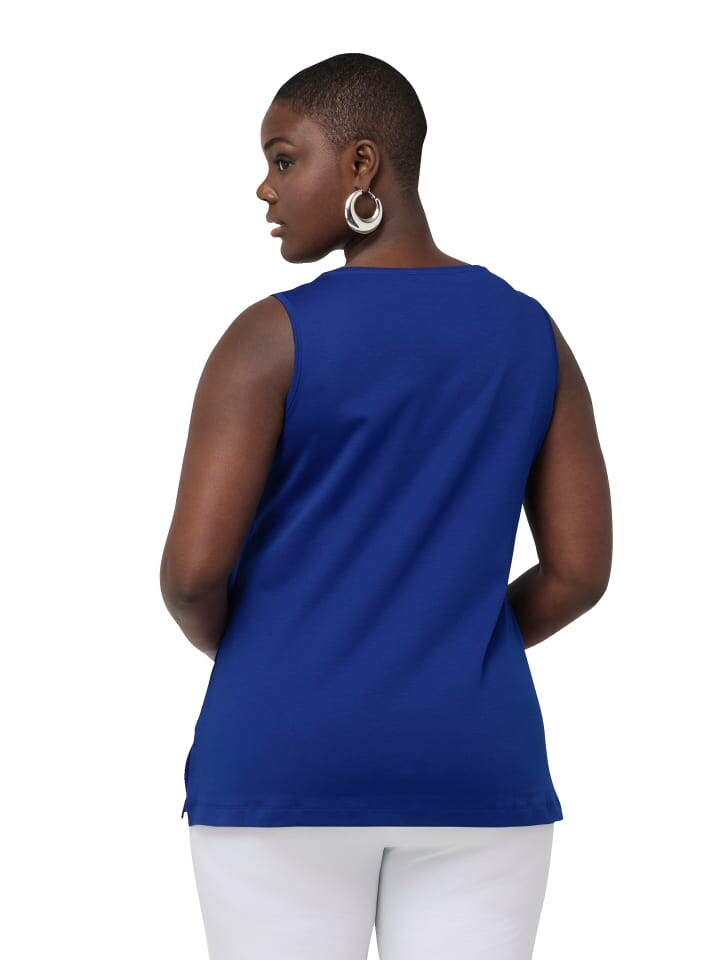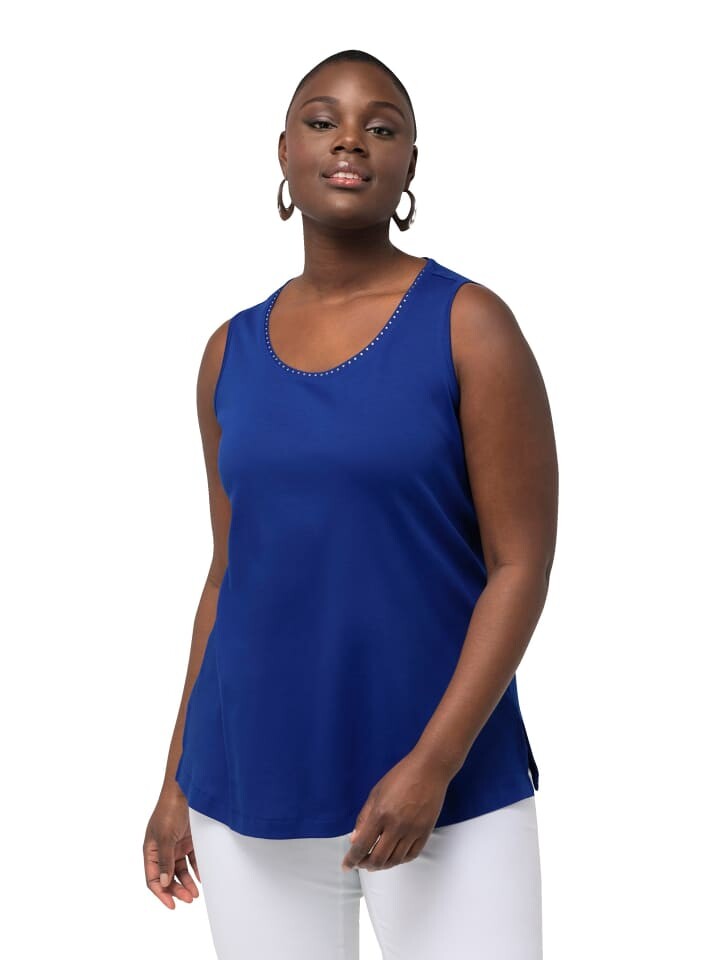 Хлопковый топ Pima - изготовлен из высококачественного мягкого хлопка. Особенно мягкий и приятный для кожи топ А-силуэта без рукавов, с декоративными камнями на круглой горловине.