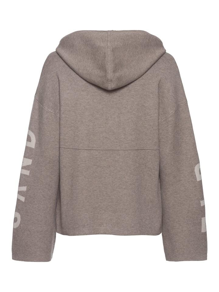Повседневная вязаная толстовка от Elbsand с фирменными надписями вдоль трубчатых рукавов. Капюшон на подкладке и шнурке. Свободный крой со спущенной линией плеч. Универсальность в сочетании. Мягкий трикотаж с вискозой.