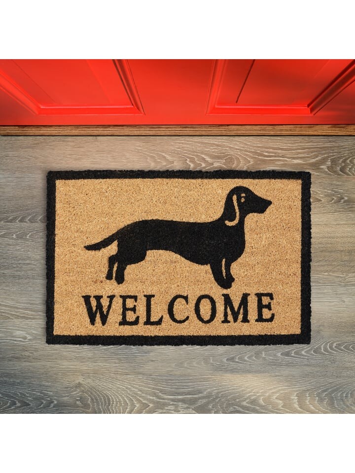 С помощью этого забавного коврика для любителей собак вы сможете вызвать улыбку на лицах ваших гостей еще до того, как они откроют дверь. Но дверной коврик впечатляет не только визуально. Натуральные кокосовые волокна делают коврик прочным и долговечным. Экологически чистое сырье отличается атмосферостойкостью и придает коврику естественный вид. Нижняя сторона изготовлена из нескользящего ПВХ, поэтому коврик для обуви остается на своем первоначальном месте.