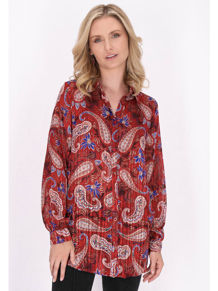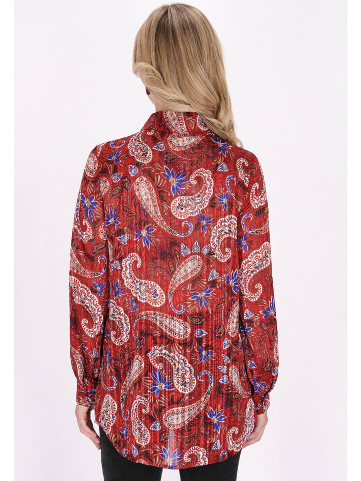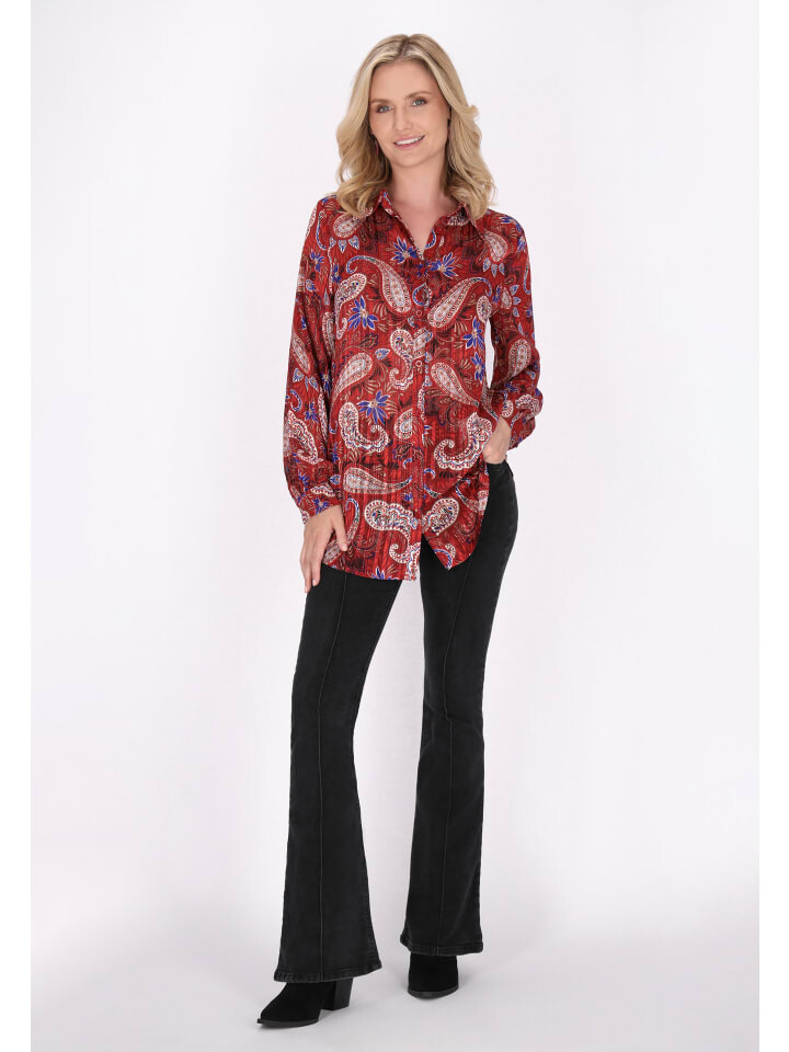 Откройте для себя идеальное дополнение к своему гардеробу — эту длинную рубашку с принтом пейсли на пуговицах. Эта стильная модель с длинными рукавами имеет классическую застежку спереди и воротник, демонстрируя замысловатый принт в стиле бохо, который украсит любой наряд. Эта универсальная длинная рубашка с нагрудным карманом, манжетами на пуговицах и изогнутым краем идеально подходит для любого случая.