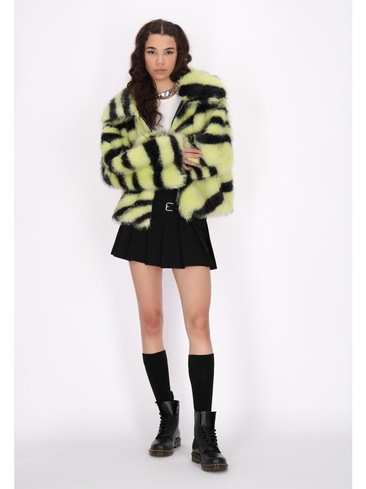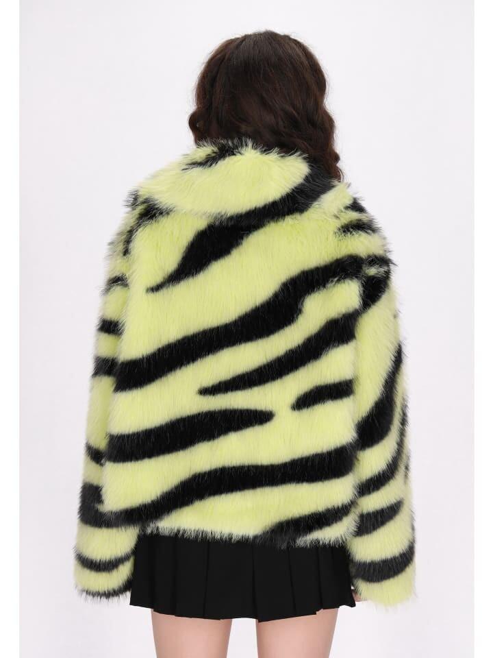 Раскройте свою дикую сторону с помощью этой эффектной куртки с эффектным меховым узором под зебру. Пушистая текстура излучает тепло и идеально подходит для прохладных дней. В сочетании с воротником и длинными рукавами, укороченный крой и видимая застежка-молния придают этому предмету верхней одежды нотку острой изысканности.
