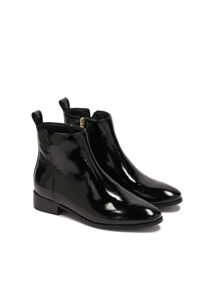 Черные лаковые сапоги – элегантная и современная обувь, идеально подходящая для женщин, ценящих минималистичный стиль и высокое качество исполнения. Запатентованная кожа придает ботинкам роскошный блеск и изысканный вид, что делает их идеальным дополнением к самым разным стилям. Ботинки классического кроя с простым минималистичным голенищем без лишних украшений. Такой дизайн подчеркивает их элегантность и универсальность, что делает их подходящими как для повседневного, так и для более формального образа. Голенище оснащено застежкой-молнией, что не только практично, но и позволяет легко надевать и снимать обувь, а также повышает комфорт.