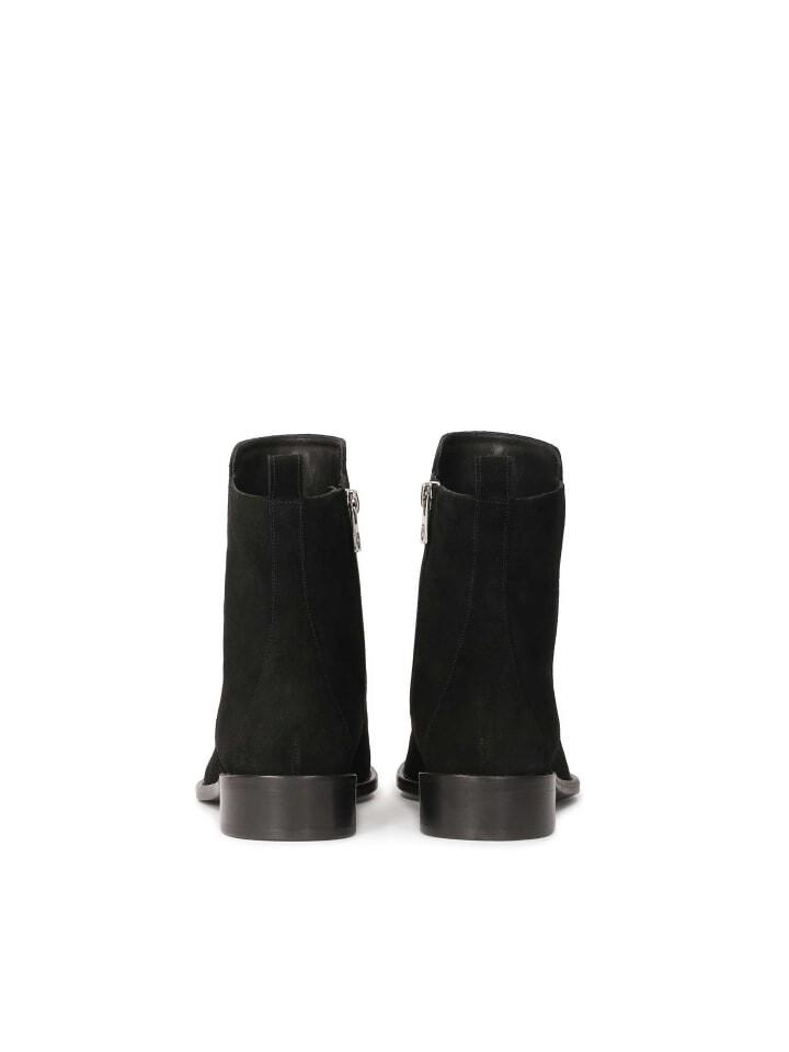 Черные замшевые женские сапоги – это стильная и удобная обувь на плоской подошве, идеальная для повседневной носки. Верх украшен тонкой каймой из стразов, придающей современный гламур, а молния облегчает надевание. Благодаря универсальному черному цвету их легко сочетать с самыми разными стилями – от повседневного до элегантного. Представленные ботинки – идеальный выбор для женщин, которые ценят сочетание элегантности, комфорта и функциональности.
