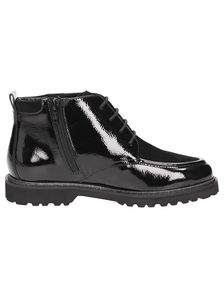Женские ботильоны на шнуровке удобной ширины H с боковой молнией для удобства надевания. Выполнено из мятой лаковой кожи, на легкой, теплой подкладке! Съемная, покрытая войлоком стелька с мягкой амортизацией - также подходит для замены на собственную стельку. Профилированная, осенняя легкая резиновая подошва с модной рамкой с блестящим эффектом.