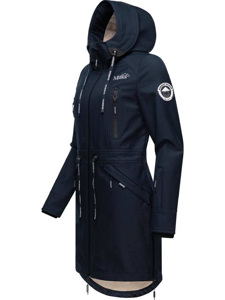 ВИД: Стильная женская парка из софтшелла с капюшоном, многочисленными деталями (контрастного цвета) и современными завязками – шикарный универсал для любого активного отдыха. МАТЕРИАЛ: Нескользящий, водонепроницаемый и ветронепроницаемый внешний материал с водяным столбом 7000 мм, куртка для активного отдыха. имеет теплую флисовую подкладку, которая доходит до капюшона и делает его особенно удобным в ношении. ПОСАДКА: переходное пальто отлично подчеркивает фигуру благодаря слегка приталенному крою и внутренней кулиске на талии. Оно имеет большую длину до ок. середина бедер (сзади немного длиннее, чем спереди)