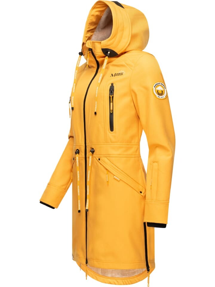 ВИД: Стильная женская парка из софтшелла с капюшоном, многочисленными деталями (контрастного цвета) и современными завязками – шикарный универсал для любого активного отдыха. МАТЕРИАЛ: Нескользящий, водонепроницаемый и ветронепроницаемый внешний материал с водяным столбом 7000 мм, куртка для активного отдыха. имеет теплую флисовую подкладку, которая доходит до капюшона и делает его особенно удобным в ношении. ПОСАДКА: переходное пальто отлично подчеркивает фигуру благодаря слегка приталенному крою и внутренней кулиске на талии. Оно имеет большую длину до ок. середина бедер (сзади немного длиннее, чем спереди)