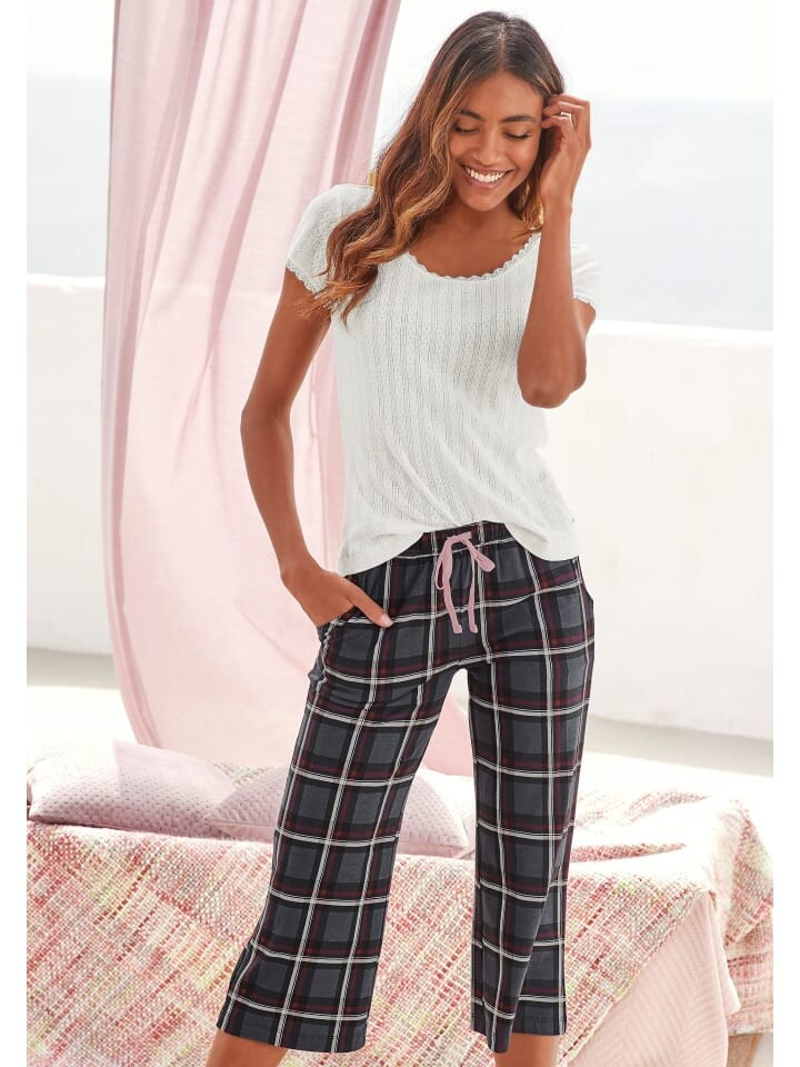 - Элегантные пижамные брюки-кюлоты с узором по всей поверхности