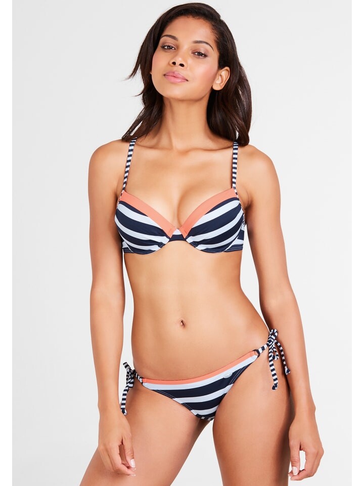 Микс-кини от KangaROOS в модном спортивном образе с широкими полосками. Смешивать по настроению. С мягкими чашками и съемными подушечками для сексуального декольте. Регулируемые бретели. Мягкое качество микрофибры.