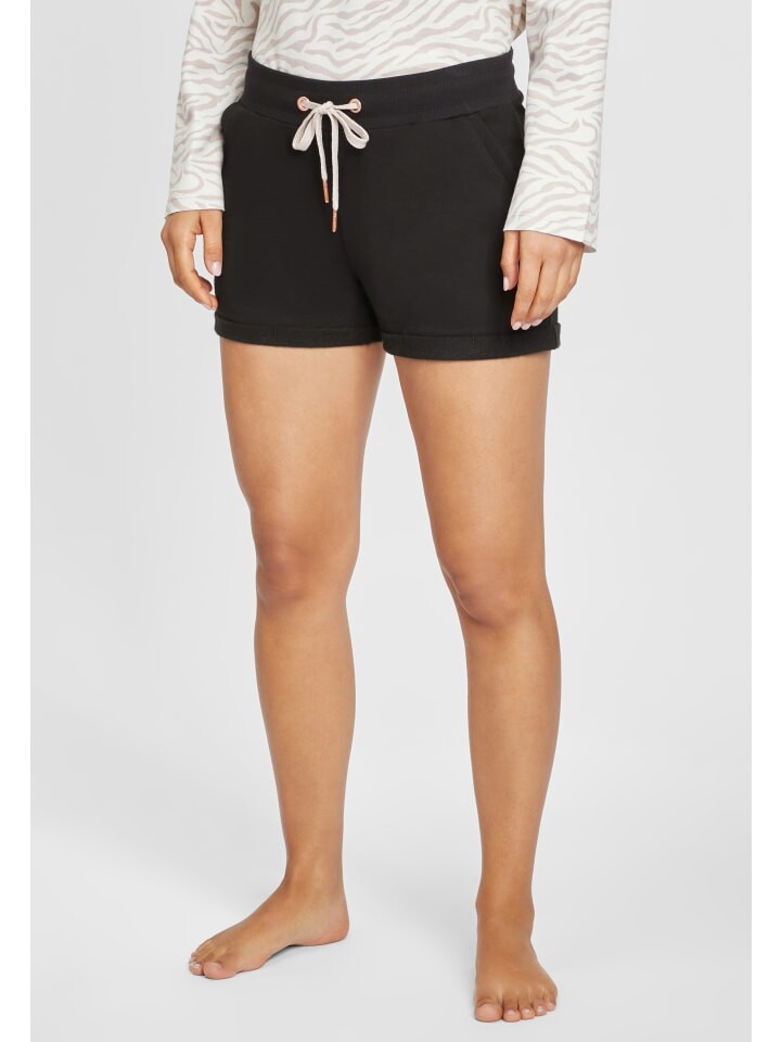 Шорты для отдыха Lascana. Эластичный пояс со шнурком и завязками для регулирования ширины. Боковые карманы и подвернутый низ. Изготовлен из 50% хлопка (поддерживает хлопок, произведенный в Африке), 50% полиэстера.