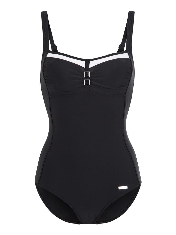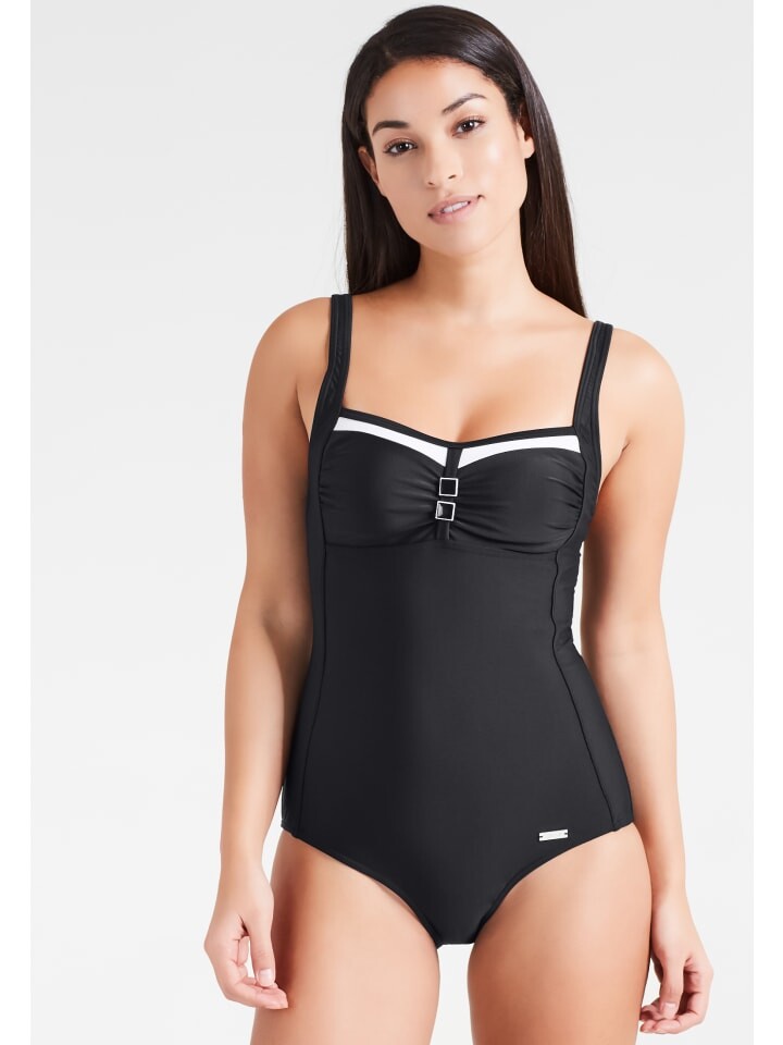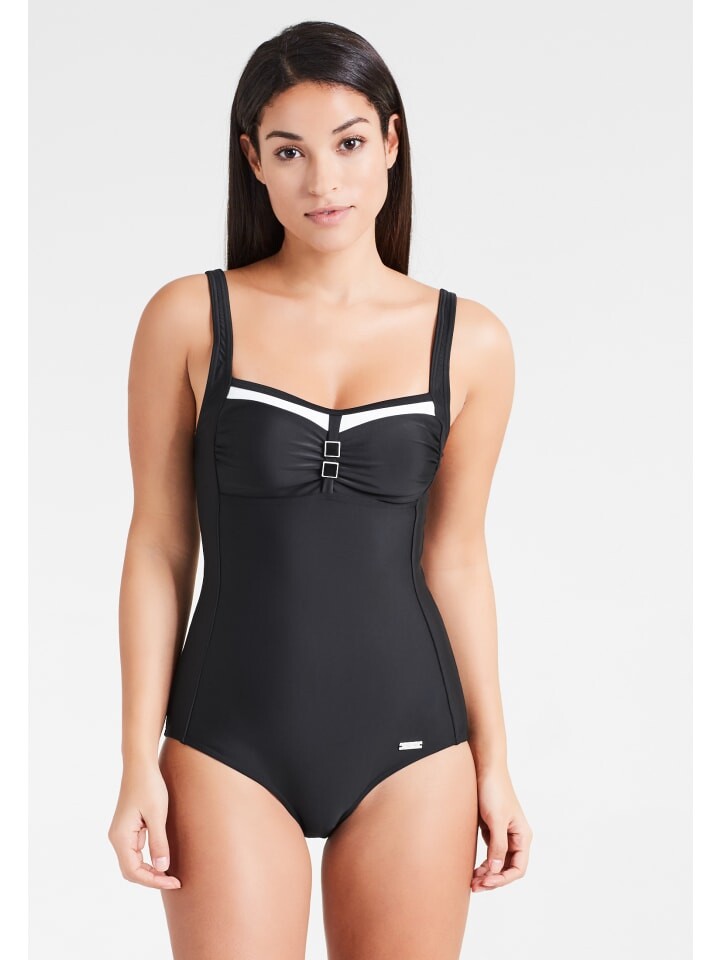 Стильный купальник от Lascana в темно-синем дизайне. Изысканность: лиф спереди визуально сужает образ. Интегрированные мягкие чашки. Регулируемые бретели. Украшения в области груди. Приятный материал.