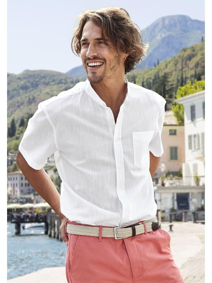Повседневная рубашка от HIS с воротником стойкой. С нагрудным карманом спереди и кокеткой сзади. Изготовлен из мягкого хлопка для удобной посадки.