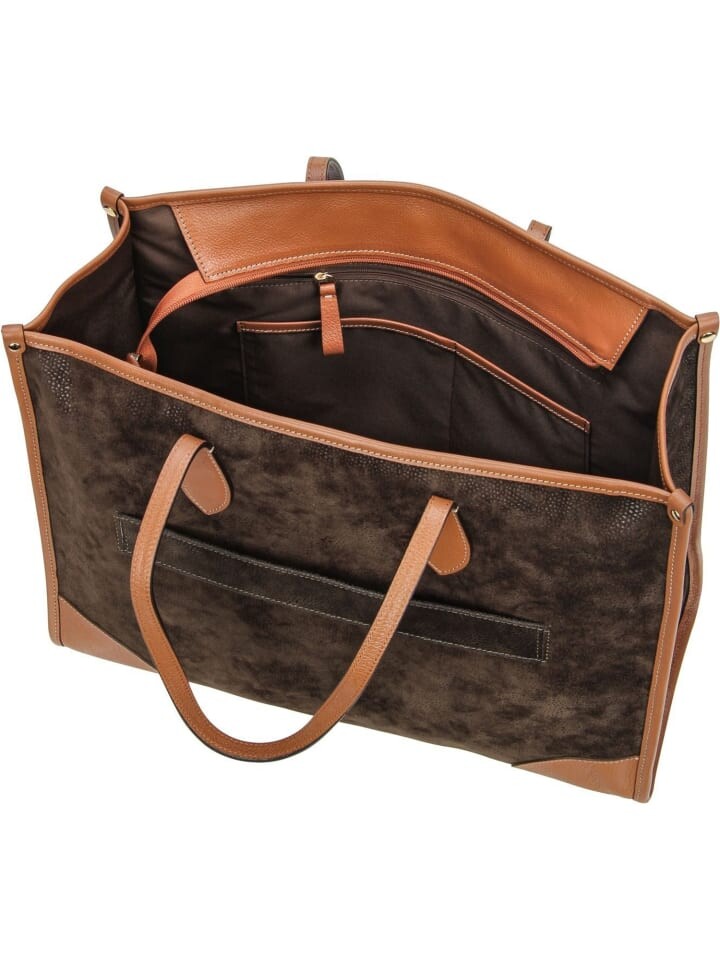 Путешествуйте стильно с Bric's: сумка-шопер из ПВХ с эффектом замши с изящными кожаными вставками, универсальный вариант для вашего отдыха и бизнеса.