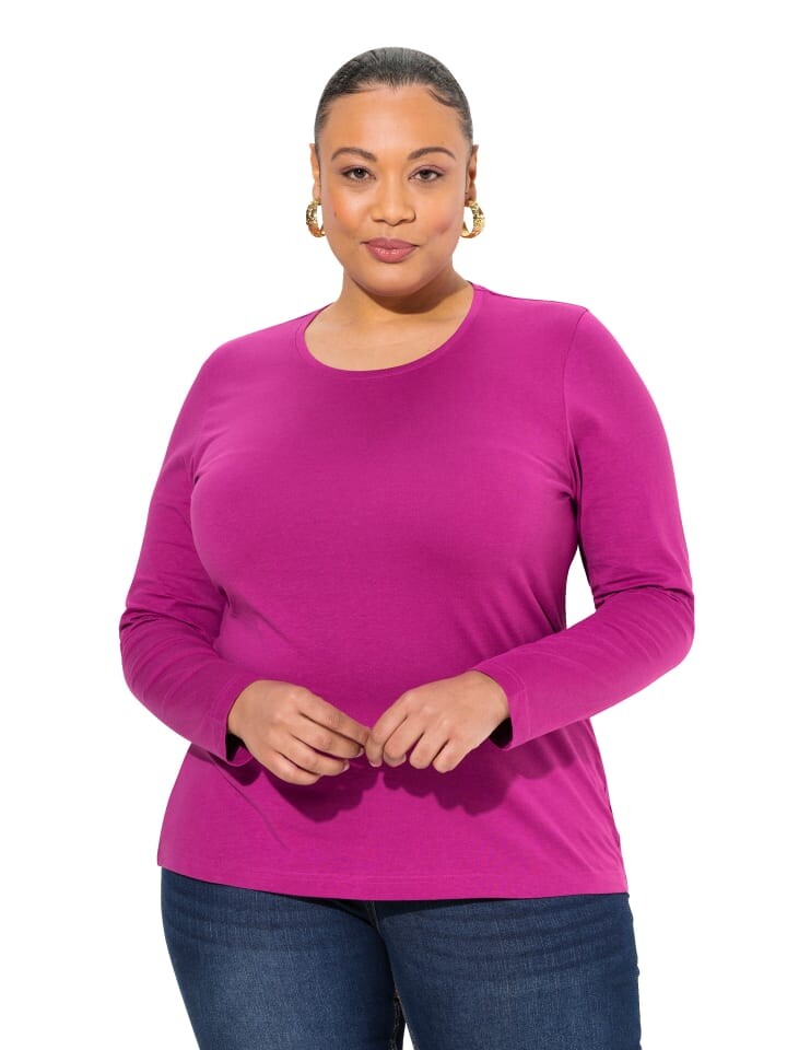Рубашка с длинными рукавами. Круглый вырез. Облегающий крой. Легкий А-силуэт.Длина по размеру: около 68 - 78 см.Красивый топ из высококачественного хлопка и вискозы легкого А-силуэта. Доступны в разных цветах, с длинными рукавами и круглым вырезом – идеально сочетаются! Можно стирать в машине.