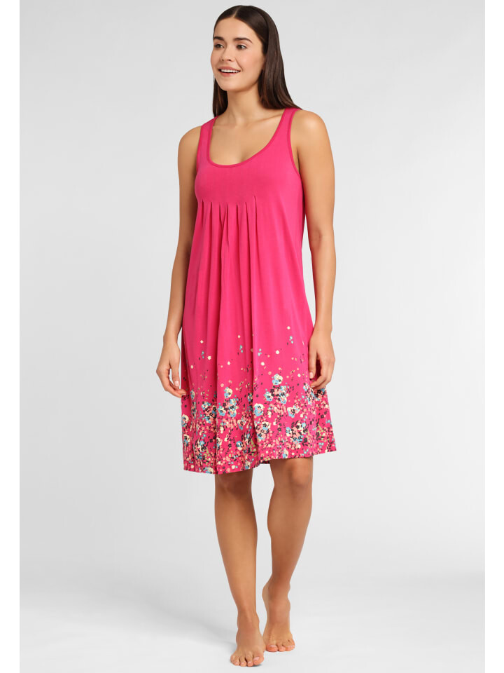 Пляжное платье в форме халата со складками ниже груди и юбкой с принтом по всей поверхности. Длина около 90 см. Мягкое, струящееся качество из 100% вискозы.