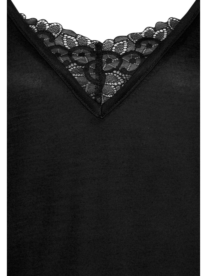 - Рубашка с длинными рукавами и V-образной кружевной вставкой у горловины