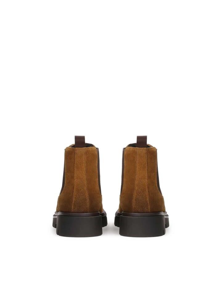 Коричневые ботинки челси с низким голенищем – классический и, прежде всего, удобный крой в стиле кэжуал. Обувь изготовлена из высококачественной замши, которая выглядит очень стильно и неподвластно времени. Эластичные вставки позволяют удобно надевать и снимать обувь, и это не занимает много времени.
