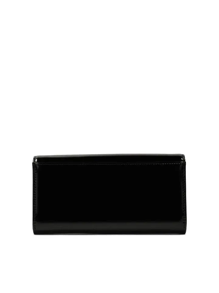 Кошелек среднего размера из лакированной кожи – практичный галантерейный аксессуар, впечатляющий своим элегантным видом. Представленная модель отличается крупным орнаментом спереди золотого цвета, который привлекает внимание и придает ей эксклюзивный характер. Просторный салон спроектирован с учетом максимальной функциональности и предлагает достаточно места для всех необходимых предметов, таких как карты, банкноты и мелкие монеты. Глубокий черный цвет и блестящая кожаная поверхность подчеркивают роскошный характер кошелька, делая его не только незаменимым аксессуаром для повседневного использования, но и элегантным аксессуаром, дополняющим любой стиль. Идеально подходит для тех, кто ценит сочетание функциональности и замечательного дизайна.