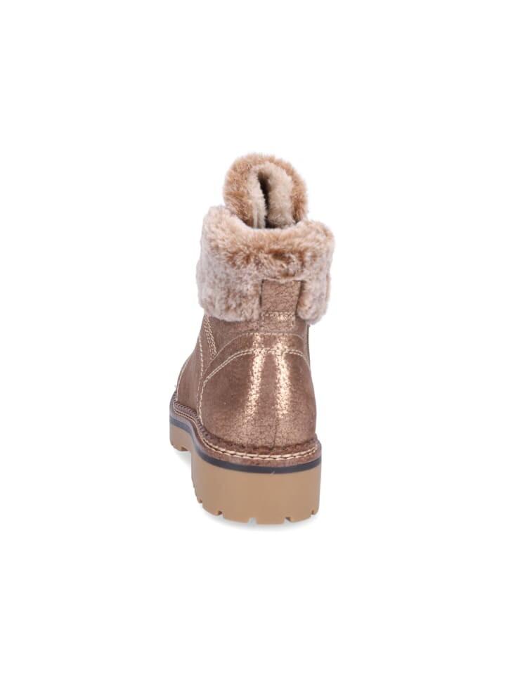 Женские ботинки Vegan Tamaris на шнуровке из текстильного материала бронзового цвета, с блокированным каблуком высотой 3,5 см и теплой текстильной подкладкой.