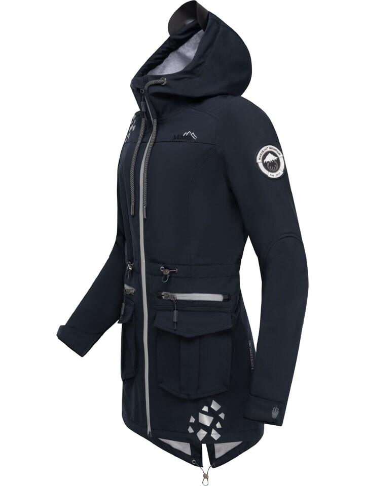 ВИД: Стильная женская куртка из софтшелла с капюшоном, многочисленными светоотражающими деталями и водонепроницаемыми молниями – шикарный универсал для любого активного отдыха. МАТЕРИАЛ: Нескользящий, водонепроницаемый и ветронепроницаемый внешний материал с водяным столбом 7000 мм, дождевик имеет приятный внешний вид. гладкая внутренняя подкладка, которая доходит до капюшона и обеспечивает особенно удобную посадку (сзади немного длиннее, чем спереди)