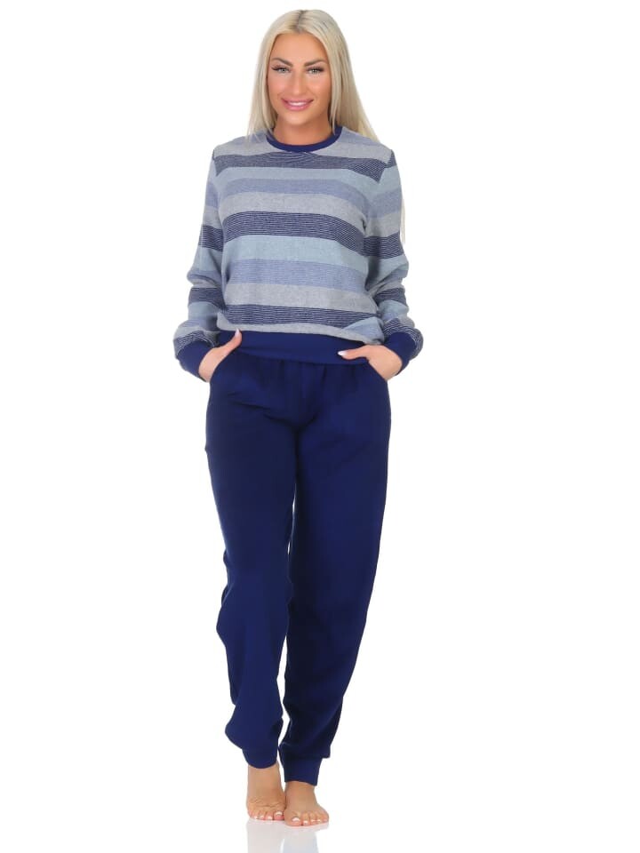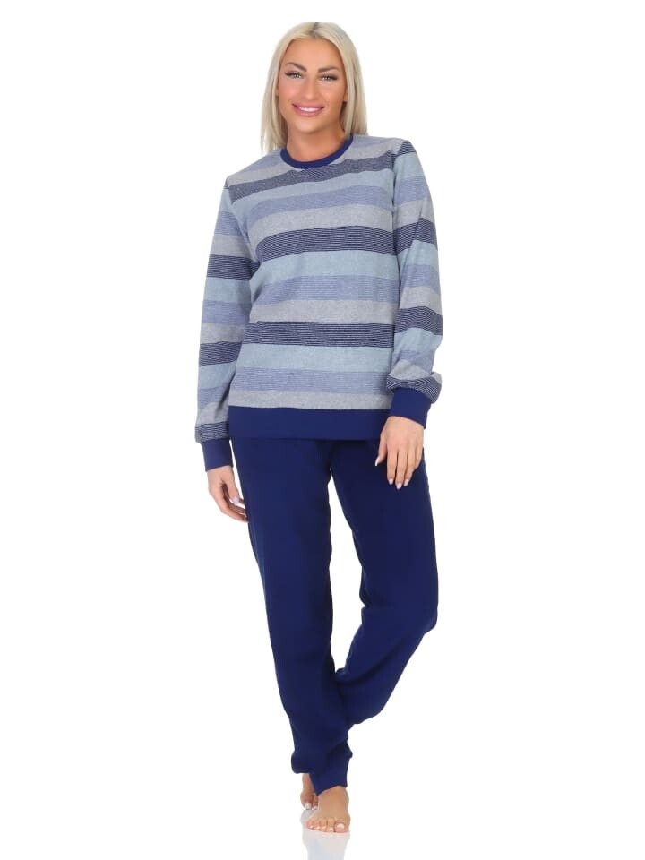 Пижама NORMANN Frottee langarm Bündchen Streifenoptik, синий