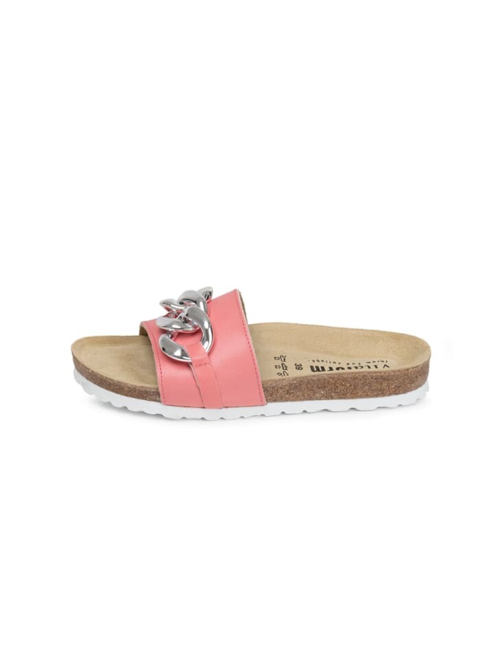 Да, это мюли с пробковой стелькой. Но видели ли вы когда-нибудь такую элегантную вещь? Цепочка с мерцающими звеньями — это эффектное зрелище, поэтому оно определенно станет стильным дополнением к изысканной вечеринке в саду. Погрузитесь в великолепное ощущение безупречной свободы и комфорта – и приятно почувствуйте под ногами тонкую пробковую стельку с воздушными подушками. И еще одна особенность этих туфель VITAFORM ручной работы: мягкая кожа наппа этих мюлей была дублена листьями оливы: экологически чистый и натуральный процесс дубления кожи, основанный на возобновляемом сырье. Полезно знать: листья в большом количестве производятся в виде остатков ежегодного урожая оливок в странах Средиземноморья и до сих пор в основном сгорают.