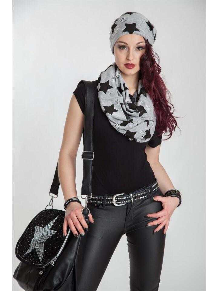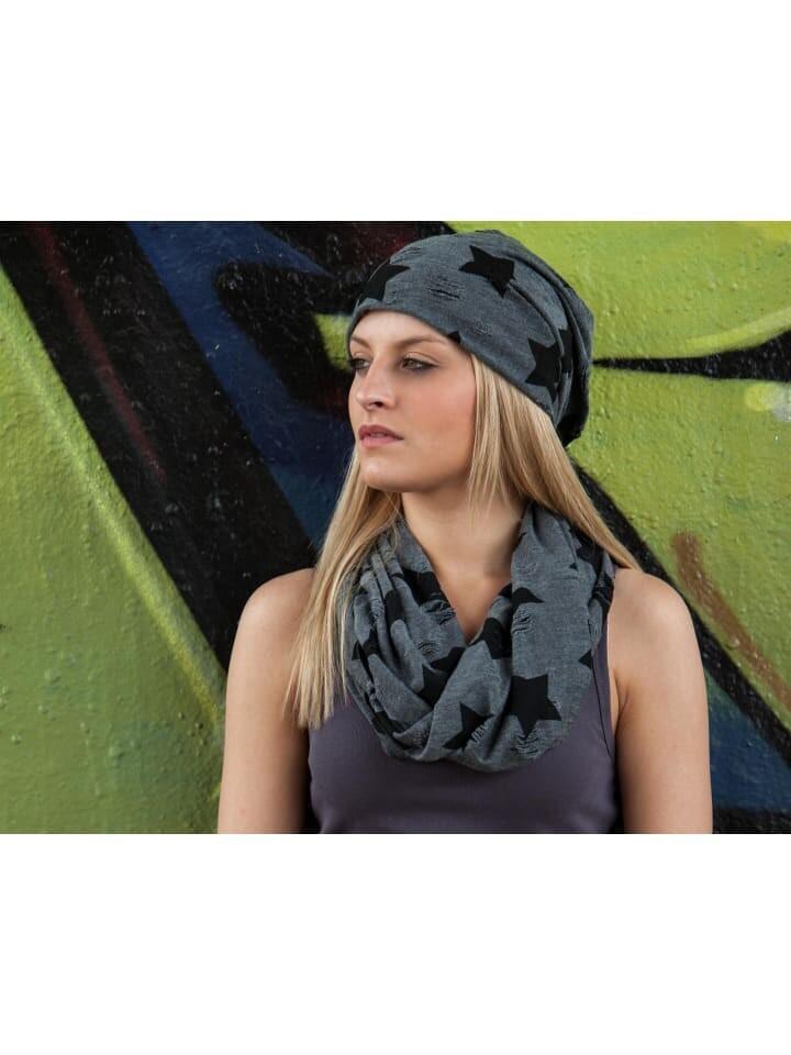 styleBREAKER стильная шапка-бини со звездным принтом и трещинами, напоминающая потертый вид.