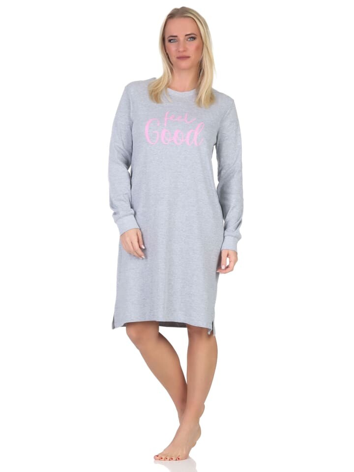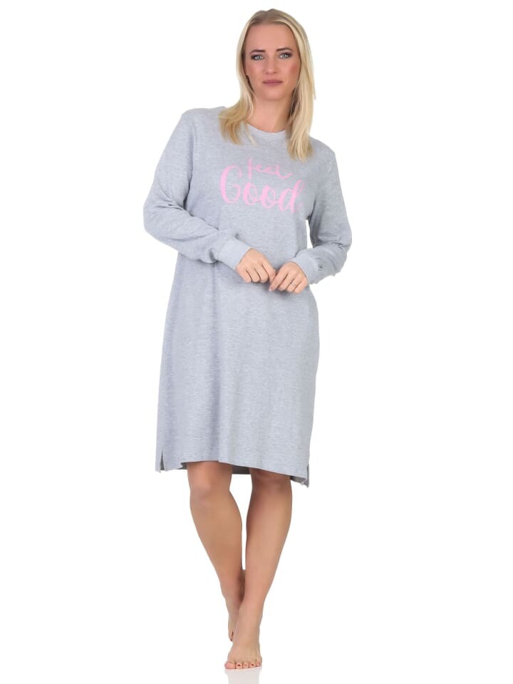 Ночная рубашка NORMANN Langarm Kuschel Interlock Frontprint, цвет grau-mel.