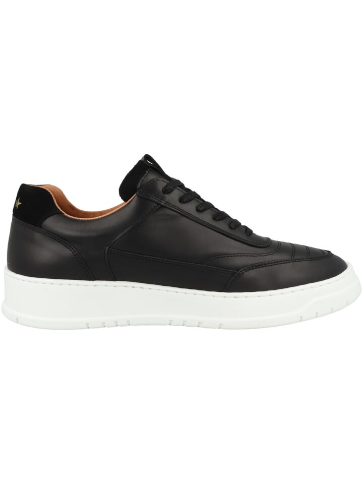 Эта обувь впечатляет своим верхом из высококачественной гладкой кожи, что обеспечивает элегантный вид и долговечность. Замша была использована в пятке, что придает дизайну интересный контраст. Характерные поперечные швы в области носка подчеркивают точность изготовления обуви. Внутренний материал также изготовлен из кожи и вместе со съемной мягкой кожаной стелькой обеспечивает высокий уровень комфорта. Голенище имеет дополнительную подкладку, что обеспечивает удобную посадку. Надпись сбоку и язычок на язычке расставляют тонкие акценты, а три звезды на пятке являются фирменным знаком обуви. Застежка классическая со шнуровкой, плоская синтетическая подошва с профилем обеспечивает надежное сцепление с различными поверхностями.