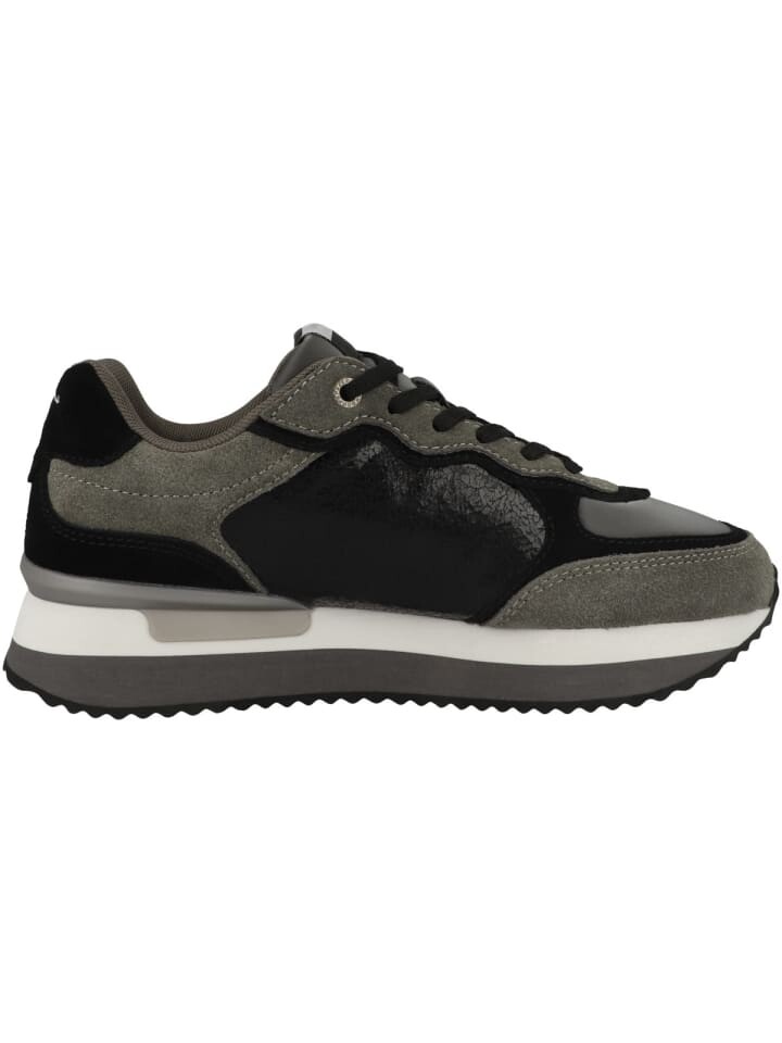 Верхний материал выполнен из замши и искусственной кожи, которые не только прочны, но и просты в уходе. Мягкая внутренняя подкладка из текстиля обеспечивает приятный микроклимат внутри и удобна в ношении. Съемная мягкая стелька обеспечивает дополнительный комфорт. Надпись Pepe Jeans украшает боковую часть и язычок обуви. Кроссовки надежно закрываются классической шнуровкой и поэтому могут идеально регулироваться. Идеально подходит для городского образа с оттенком элегантности. Легкая и стильная обувь, которая прекрасно сочетается с классическими джинсами или шикарными брюками.